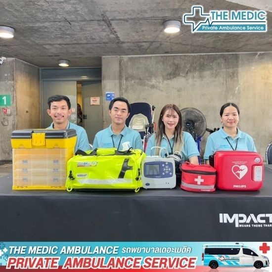 บริการรถพยาบาลพร้อมเจ้าหน้าที่ The Medic Ambulance ให้บริการรถพยาบาลพร้อมเจ้าหน้าที่ทางการแพทย์ที่มีประสบการณ์การกู้ชีพขั้นสูง ACLS สามารถดูแลผู้ป่วยฉุกเฉินและผู้ป่วยวิกฤติได้อย่างมั่นใจ "Private Ambulance Service รวดเร็ว ปลอดภัย อุ่นใจทุกเส้นทาง" พร้อมให้บริการตลอด 24 ชั่วโมง ทีมแพทย์ พยาบาล Paramedic และ EMT ประจำรถทุกเคส มีใบประกอบวิชาชีพพยาบาล ใบอนุญาตการช่วยชีวิตขั้นสูง (ACLS) และมีประสบการณ์ 10+ ปี ในการดูแลผู้ป่วยฉุกเฉินจริง ดูแลผู้ป่วยแบบ Personalized Care ตามอาการและความจำเป็นเฉพาะบุคคล พร้อมรับเคสทั่วไป เคสรีเฟอร์ และเคสวิกฤติ ประสานงานกับโรงพยาบาลปลายทางอย่างเป็นระบบ